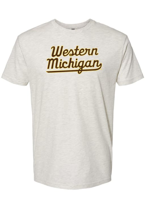 Display your team spirit with this remarkable Western Michigan Broncos Oatmeal Western Michigan Script Short Sleeve T Shirt! The WMU Broncos Short Sleeve Tee showcases a screen print team graphic across chest that truly sets it apart. Stand out from the crowd and proudly declare your allegiance to the Broncos with this exceptional Oatmeal WMU Broncos T Shirt. Go Broncos!