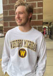Size Chart for Mens White Western Michigan Broncos Arch Mascot Tee