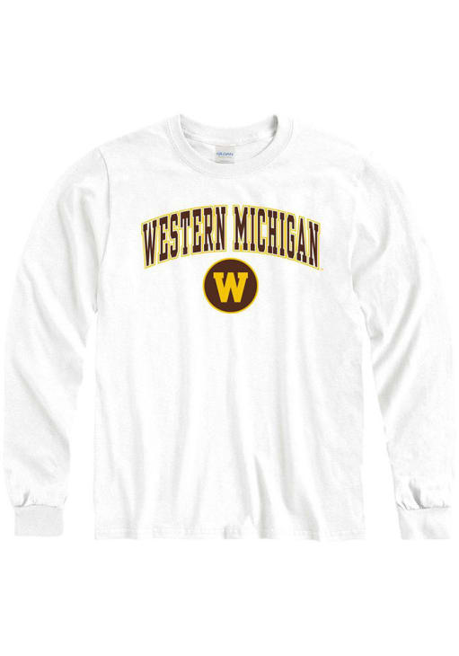 Show your Western Michigan Broncos spirit in this WMU Broncos White T Shirt! This WMU Broncos Arch Mascot Long Sleeve T Shirt makes a great layer for cooler nights cheering on the Broncos. Featuring a screen print WMU graphic, this Western Michigan Broncos Long Sleeve Tee is an essential addition for every fan. Go Broncos!