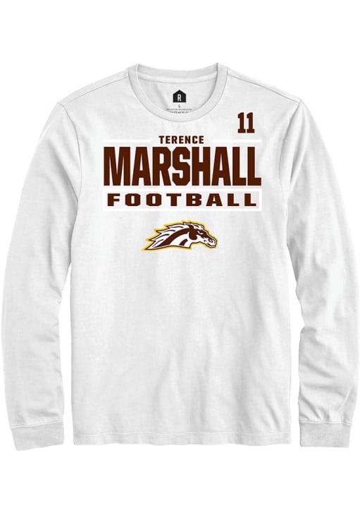 Embrace the spirit of your favorite player in this Western Michigan Broncos White Football NIL Stacked Box Terence Marshall Long Sleeve Player Tee! This Player T Shirt features a NIL graphic, so everyone will know you cheer for WMU Broncos, Terence Marshall! This is the perfect Broncos Player Tee for game days. Go Broncos!