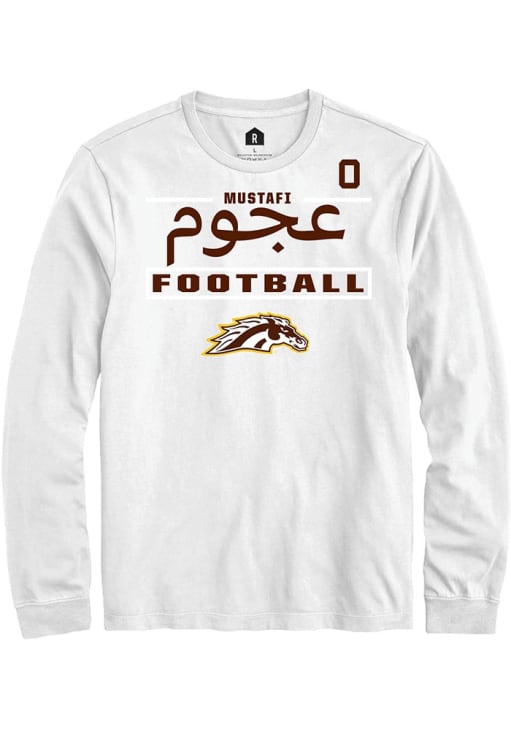 Embrace the spirit of your favorite player in this Western Michigan Broncos White Football NIL Stacked Box Mustafi Al-Gawari Long Sleeve Player Tee! This Player T Shirt features a NIL graphic, so everyone will know you cheer for WMU Broncos, Mustafi Al-Gawari! This is the perfect Broncos Player Tee for game days. Go Broncos!