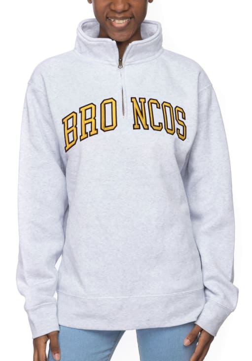Embrace the warmth and showcase your Broncos pride with our Western Michigan Broncos Long Sleeve Qtr Zip. This Womens Ash Sport Long Sleeve Pullover offers a applique with embroidered team name on center chest for the perfect combination of comfort and style. Elevate your everyday look with this must-have Western Michigan Broncos Long Sleeve Qtr Zip.