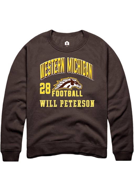 Support your Western Michigan Broncos and favorite Will Peterson in this Western Michigan Broncos Mens Brown Football NIL Arch Logo Player Crew. This Crew Sweatshirt features a NIL graphic, and is sure to stand out in the stadium. Perfect to wear on game day or any day!