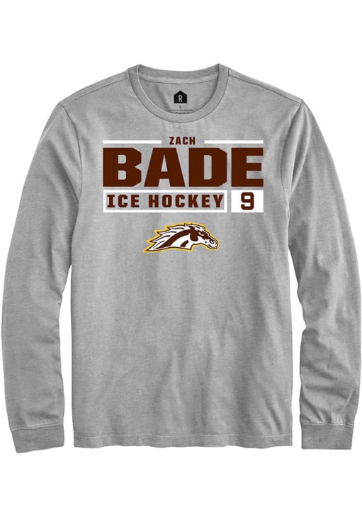 Zach Bade Rally Mens Grey Western Michigan Broncos NIL Stacked Box Tee