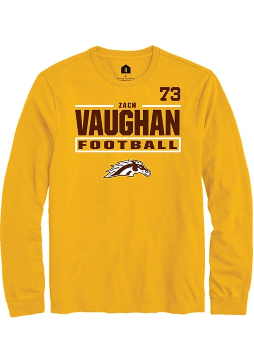 Embrace the spirit of your favorite player in this Western Michigan Broncos Gold Football NIL Stacked Box Zach Vaughan Long Sleeve Player Tee! This Player T Shirt features a NIL graphic, so everyone will know you cheer for WMU Broncos, Zach Vaughan! This is the perfect Broncos Player Tee for game days. Go Broncos!