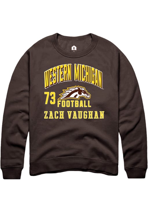 Support your Western Michigan Broncos and favorite Zach Vaughan in this Western Michigan Broncos Mens Brown Football NIL Arch Logo Player Crew. This Crew Sweatshirt features a NIL graphic, and is sure to stand out in the stadium. Perfect to wear on game day or any day!