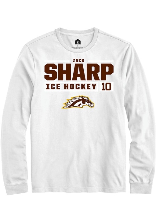Zack Sharp Rally Mens White Western Michigan Broncos NIL Stacked Box Tee