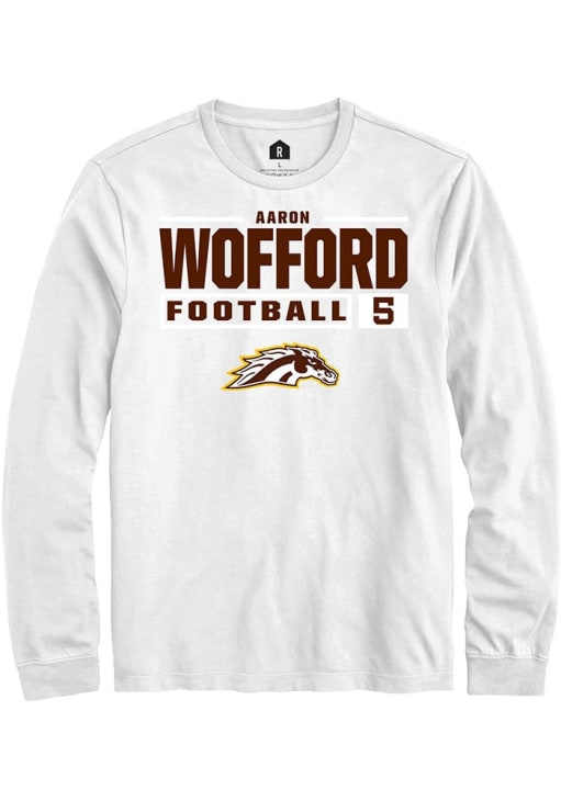 Show your Western Michigan Broncos spirit in this WMU Broncos White T Shirt! This WMU Broncos Football NIL Stacked Box Long Sleeve T Shirt makes a great layer for cooler nights cheering on the Broncos. Featuring a custom graphic with player's name and number, this Western Michigan Broncos Long Sleeve Tee is an essential addition for every fan. Go Broncos!