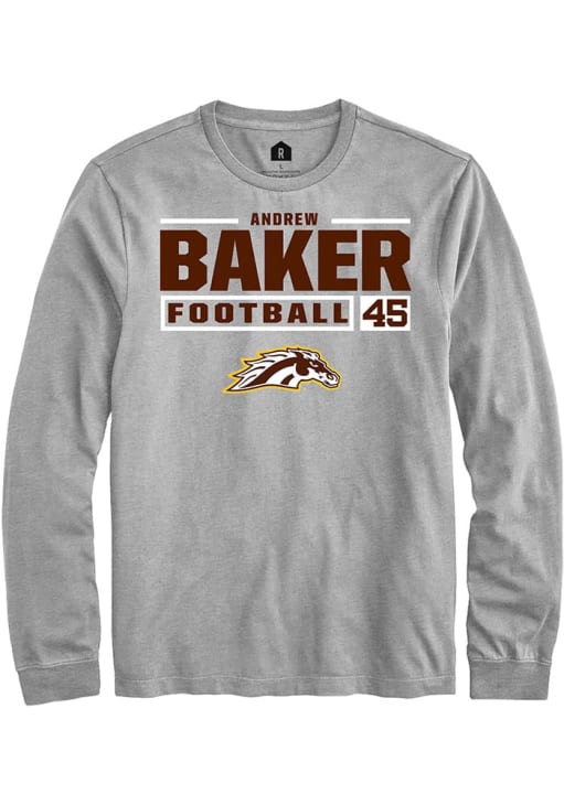 Andrew Baker Rally Mens Grey Western Michigan Broncos Football NIL Stacked Box Tee