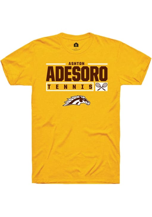 Ashton Adesoro Gold Western Michigan Broncos NIL Stacked Box Short Sleeve T Shirt