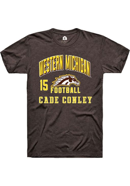 Cade Conley Brown Western Michigan Broncos Football NIL Arch Logo Short Sleeve T Shirt