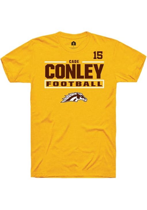 Cade Conley Gold Western Michigan Broncos Football NIL Stacked Box Short Sleeve T Shirt