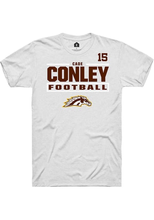 Cade Conley White Western Michigan Broncos Football NIL Stacked Box Short Sleeve T Shirt