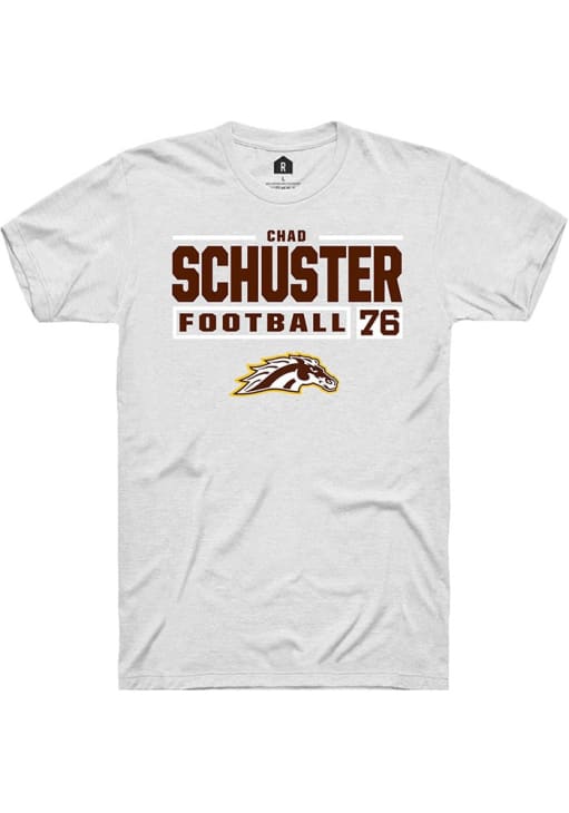 Chad Schuster White Western Michigan Broncos Football NIL Stacked Box Short Sleeve T Shirt