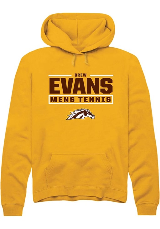 Drew Evans Rally Mens Gold Western Michigan Broncos NIL Stacked Box Hooded Sweatshirt