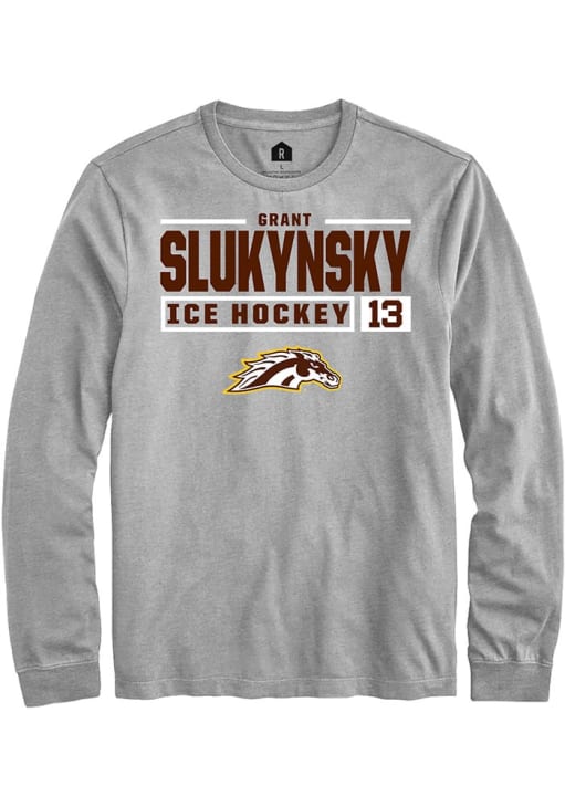 Grant Slukynsky Rally Mens Grey Western Michigan Broncos NIL Stacked Box Tee