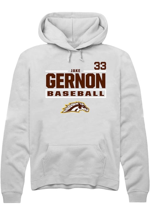 Jake Gernon Rally Mens White Western Michigan Broncos NIL Stacked Box Hooded Sweatshirt