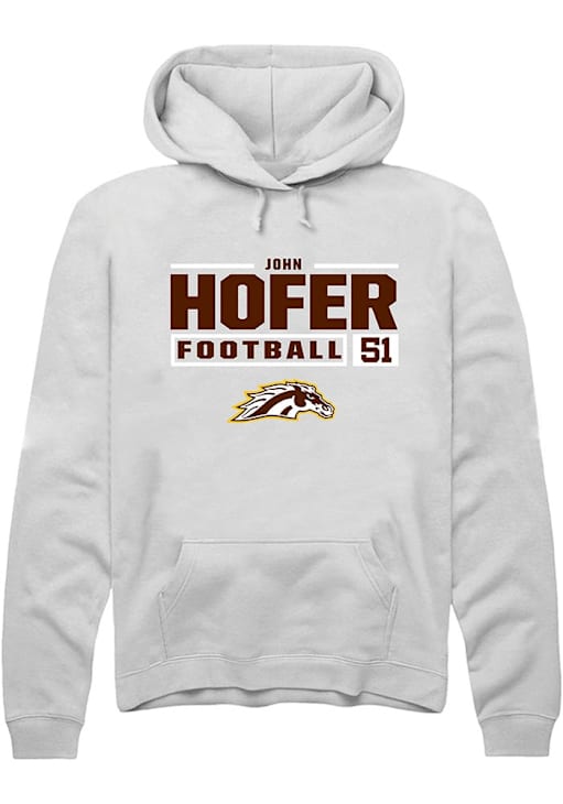 Embrace your Broncos pride and showcase your team spirit with confidence in this Western Michigan Broncos Long Sleeve Hoodie! Stay warm and stylish with the WMU Broncos Mens White Football NIL Stacked Box Hooded Sweatshirt. Designed with custom graphic with player's name and number, this Broncos Long Sleeve Hoodie is a must-have for dedicated fans.
