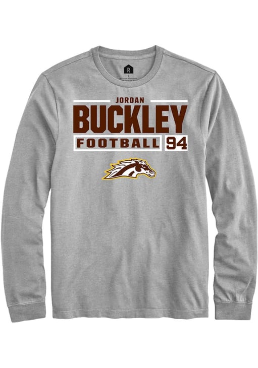 Jordan Buckley Rally Mens Grey Western Michigan Broncos Football NIL Stacked Box Tee