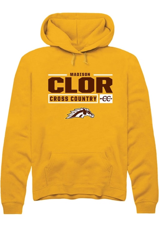 Madison Clor Rally Mens Gold Western Michigan Broncos NIL Stacked Box Hooded Sweatshirt