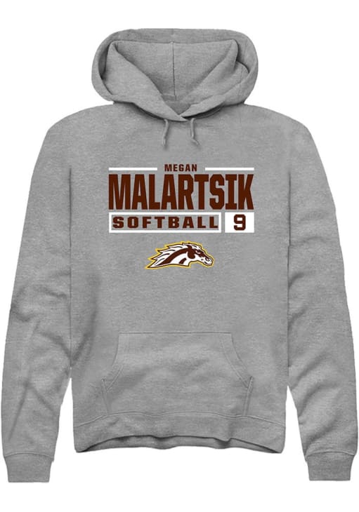 megan malartsik Rally Mens Grey Western Michigan Broncos NIL Stacked Box Hooded Sweatshirt