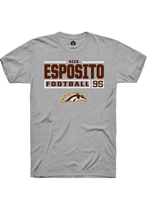Nick Esposito Grey Western Michigan Broncos Football NIL Stacked Box Short Sleeve T Shirt