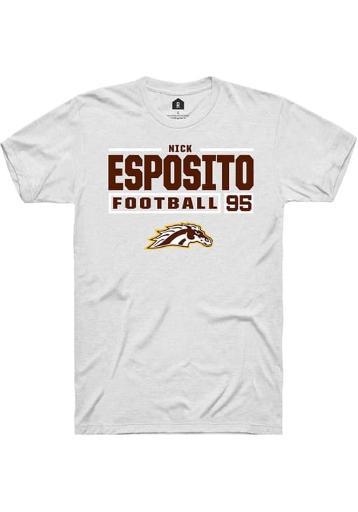 Nick Esposito White Western Michigan Broncos Football NIL Stacked Box Short Sleeve T Shirt