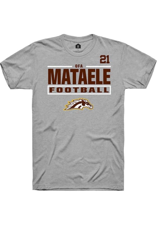 Ofa Mataele Grey Western Michigan Broncos Football NIL Stacked Box Short Sleeve T Shirt