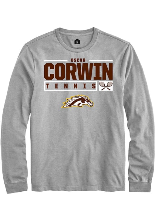 Oscar Corwin Rally Mens Grey Western Michigan Broncos NIL Stacked Box Tee