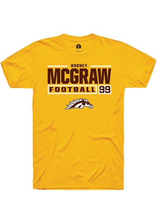 Display your team spirit with this remarkable Western Michigan Broncos Rally Gold Football NIL Stacked Box Short Sleeve T Shirt! The WMU Broncos Short Sleeve Tee showcases a custom graphic with player's name and number that truly sets it apart. Stand out from the crowd and proudly declare your allegiance to the Broncos with this exceptional Gold WMU Broncos T Shirt. Go Broncos!