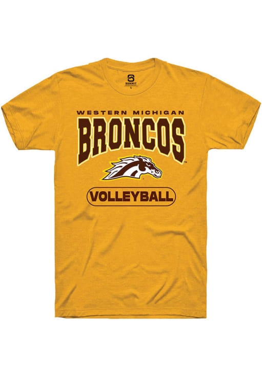 Display your team spirit with this remarkable Western Michigan Broncos Summit Sportswear Gold Volleyball Short Sleeve T Shirt! The WMU Broncos Short Sleeve Tee showcases a digitally printed graphic that truly sets it apart. Stand out from the crowd and proudly declare your allegiance to the Broncos with this exceptional Gold WMU Broncos T Shirt. Go Broncos!