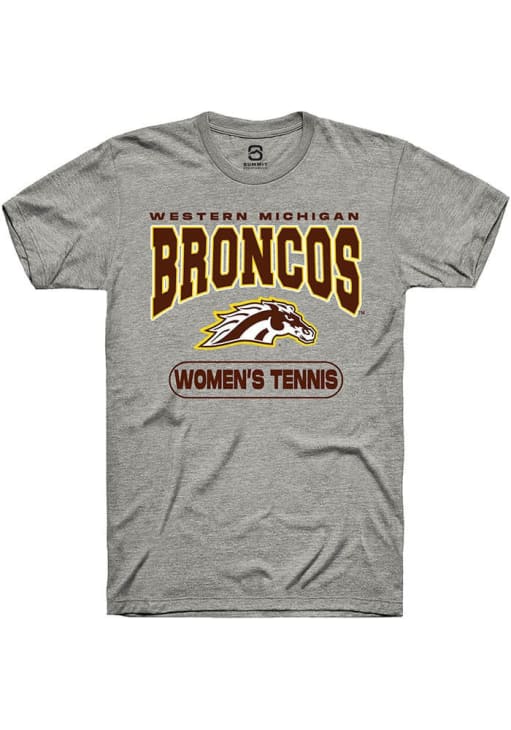 Display your team spirit with this remarkable Western Michigan Broncos Summit Sportswear Grey Womens Tennis Short Sleeve T Shirt! The WMU Broncos Short Sleeve Tee showcases a digitally printed graphic that truly sets it apart. Stand out from the crowd and proudly declare your allegiance to the Broncos with this exceptional Grey WMU Broncos T Shirt. Go Broncos!