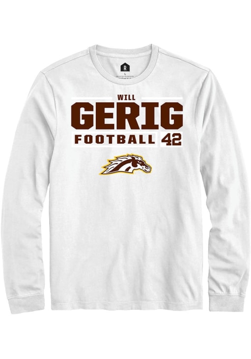 Will Gerig Rally Mens White Western Michigan Broncos Football NIL Stacked Box Tee