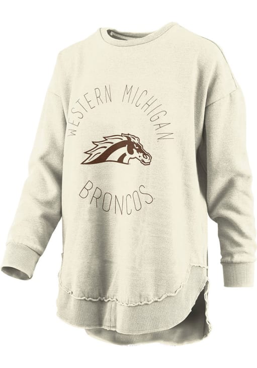 Gear up for the ultimate game day experience with this remarkable Western Michigan BroncosWomens Ivory Vintage Crew Sweatshirt! Designed with the true fan in mind, this Broncos Long Sleeve Sweatshirt features a screen print team name and mascot on full chest. Stay warm and comfortable with this Womens WMU Broncos Broncos Crew Sweatshirt.