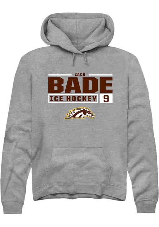Zach Bade Rally Mens Grey Western Michigan Broncos NIL Stacked Box Hooded Sweatshirt