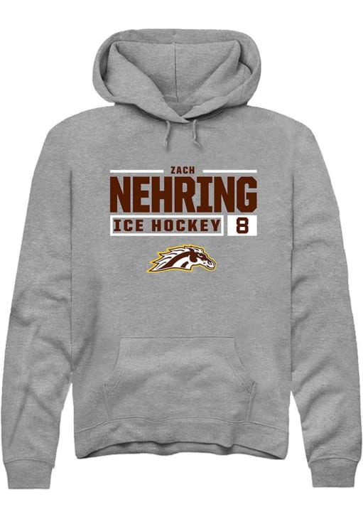 Zach Nehring Rally Mens Grey Western Michigan Broncos NIL Stacked Box Hooded Sweatshirt